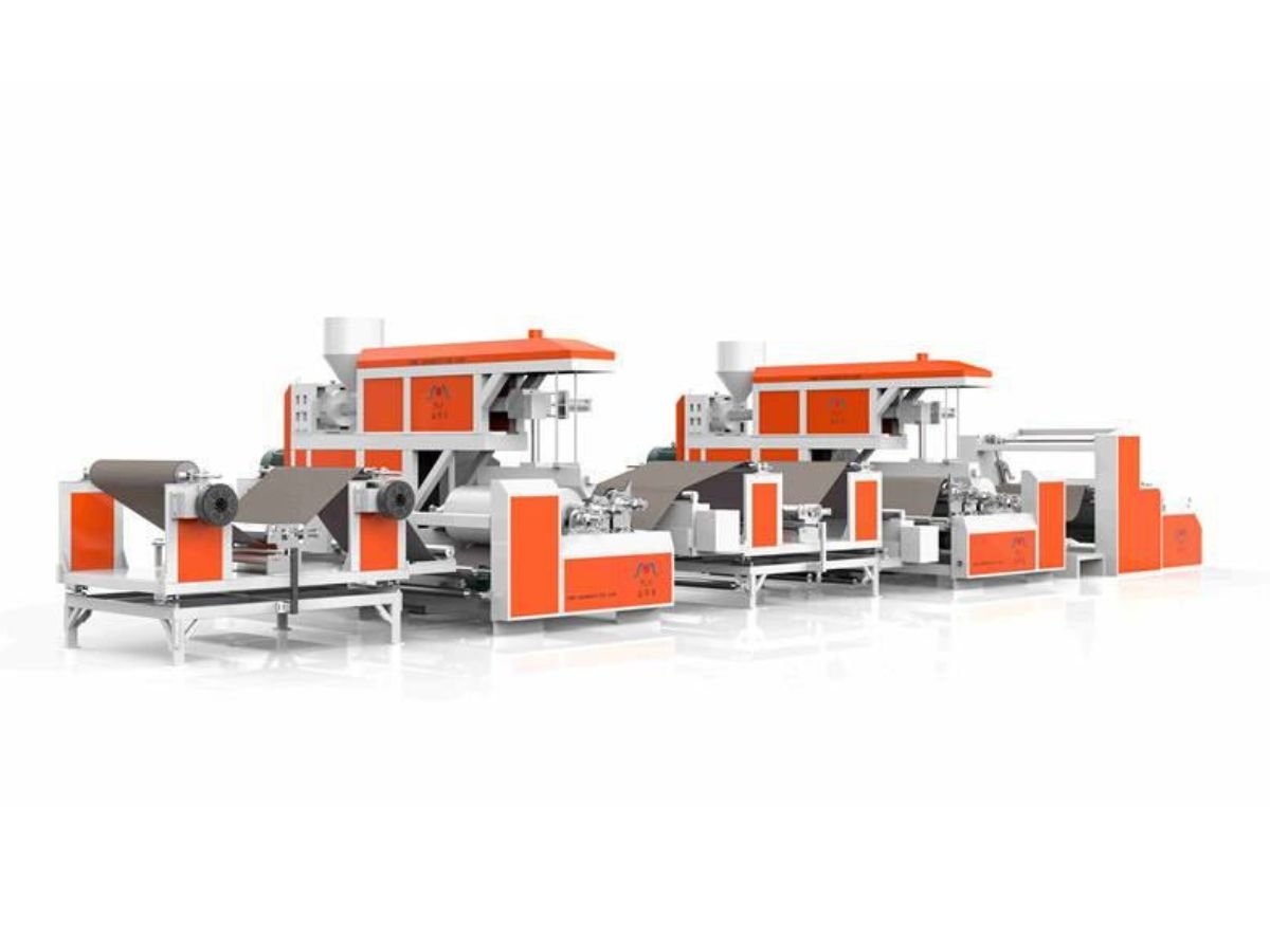 Экструзионный ламинатор для ламинирования листов из вспененного полиэтилена с полиэтиленовой пленкой, цветной пленкой, ПВХ, алюминиевой фольгой и другими материалами.